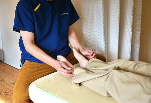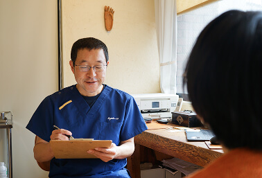 施術の特色 自律神経に働きかける新しい整体法と、その効果 ■身体を外からではなく内側から整える新しい整体 当院の施術は、強く押したり揉んだりすることはありません。足首にそっと触れ、わずかな振動を自律神経へ届けることで、固くなった筋肉や内臓がゆるみはじめ、体が本来の動きを取り戻していきます。「足に触っているだけなのに、体が温かくなる」「お腹がぐるぐる動き出す」「昔のケガの部分がじんわり反応する」そんな声をよくいただきます。 ■痛みの“根っこ”にあるのは、自律神経の緊張 私たちの体は、自律神経が常に体温・呼吸・内臓の働きを調整し守ってくれています。しかし、ストレスや冷え、疲労が重なると、自律神経は体を守ろうとして筋肉や内臓を“ぎゅっ”と固めてしまいます。この“ぎゅっ”と固まった状態が続くことで、足・腰・肩などの弱い部分に痛みがあらわれます。一般的には「アーチの崩れ」などが原因と言われますが、実際には アーチの崩れは“結果” であり、本当の原因はもっと深いところ にあります。当院では、この根本となる自律神経の緊張から整えていきます。 ■自律神経に働きかける独自の調整法 外側から強く押すと筋肉は反発して、かえって固くなってしまいます。そこで当院では、足首に優しく触れながら、自律神経が反応しやすい“最小限の刺激”を使って内側からゆるめていきます。固さには“記憶”のようなものがあり、浅い部分がゆるむと、奥に隠れていた固さが少しずつ姿をあらわします。このプロセスをくり返すことで、体は本来の状態へ戻っていきます。 足だけでなく、体全体が変わっていく理由 足の痛みで来院された方から、よくこんな言葉をいただきます。「腰痛も肩こりも、気づけばなくなっていました」 筋肉や内臓の固さは、足だけでなく体のあちこちに影響します。内側からゆるんでいくことで、全身が自然に軽くなり、「疲れにくい体」へと変わっていきます。 “昔の元気なころの体” に戻していく施術 施術の目的は、痛みだけを取ることではありません。長年の疲労でいっぱいになっていた体の“タンク”を少しずつ空にしていき、本来の回復力を取り戻すこと。痛みの改善は、その途中で自然に起こる変化のひとつです。あなたが「痛みを気にせず歩ける毎日」を取り戻せるように、お一人おひとりの体の反応に合わせて丁寧に施術していきます。 あなたのお悩みに合わせて、最適な施術をご提案します 当院では、お一人おひとりの状態に合わせて、その日の体調を見ながら施術を行っています。はじめての方も、どうぞ安心してご相談ください。 ご予約はこちら 初めての方へ 予約はこちら